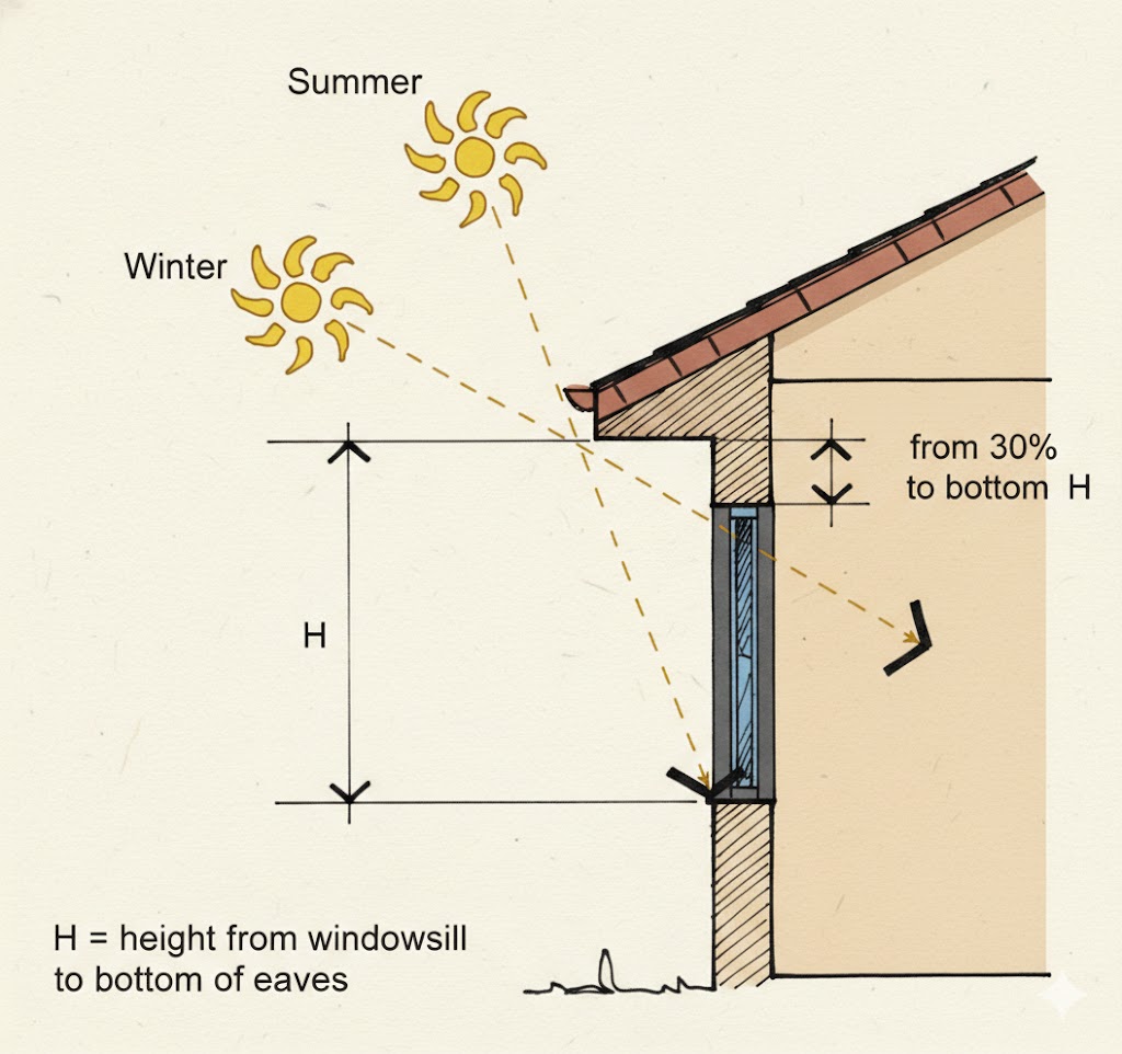 - Horizontal shading such as eaves works best on north facing façades